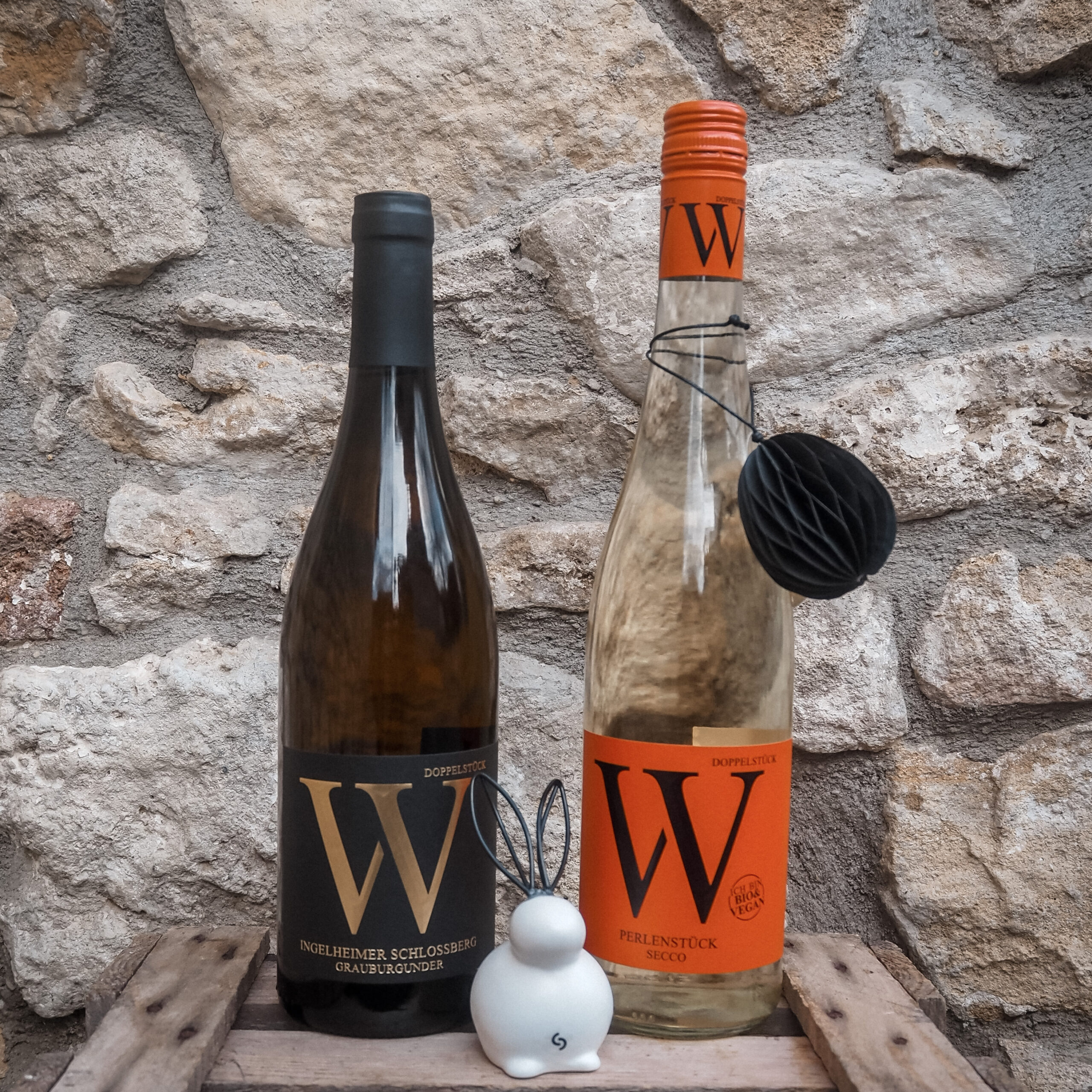 2 Flaschen + 1 Deko-Papier-Ei + 1 Deko-Hase